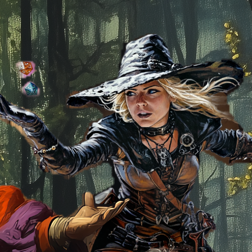 polyhedral dice. She keeps her matrices in a special pouch at her hip,